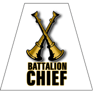 T-BU2-BC2: Two bugles (Battalion Chief) reflective fire helmet tetrahedrons (2 inch - set of 8)