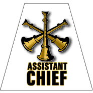 T-BU3-AC2: Three bugles (Assistant Chief) reflective fire helmet tetrahedrons (2 inch - set of 8)