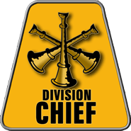 T-BU3-DC-Y: Division Chief with 3 bugles on yellow reflective fire helmet tetrahedrons (2 inch - set of 8).